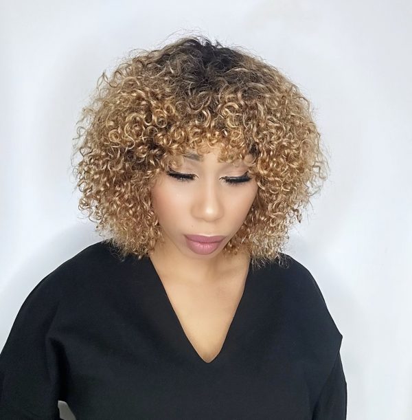 ✨ Perruque Bob Brésilienne Bouncy Wave avec Frange 1B/30 Taille 12 Pouces ✨