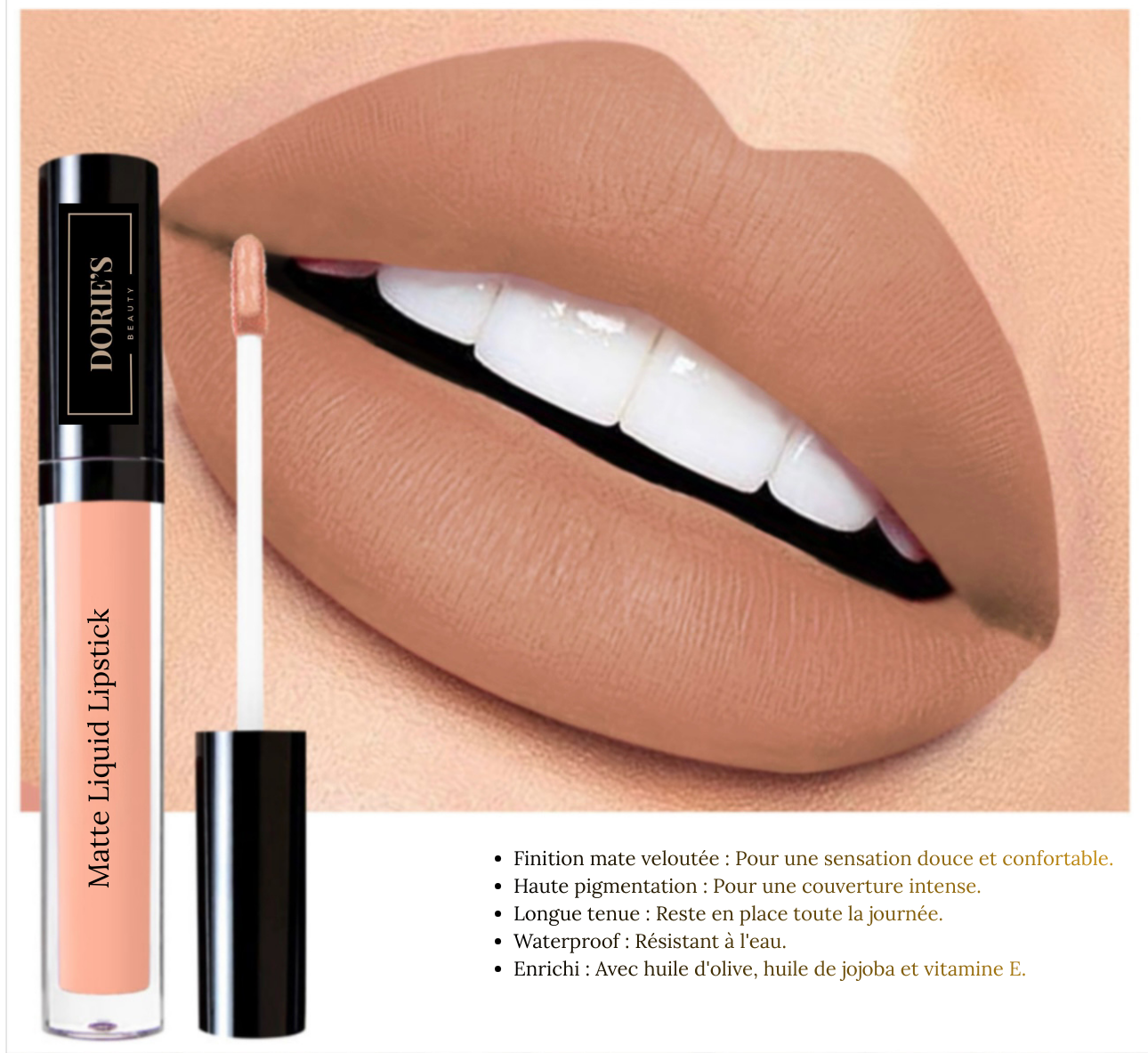 GLOSS MAT – NUDE Finition Mate Veloutée Haute Pigmentation Longue Tenue Waterproof Enrichi en Huile d’Olive Huile de Jojoba et Vitamine E