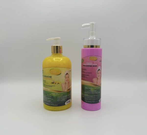 Composé d’un gel douche gommant au citron et au curcuma, et d’une crème hydratante et uniformisante au collagène rose, ce duo agit en synergie pour révéler un teint éclatant et sain.