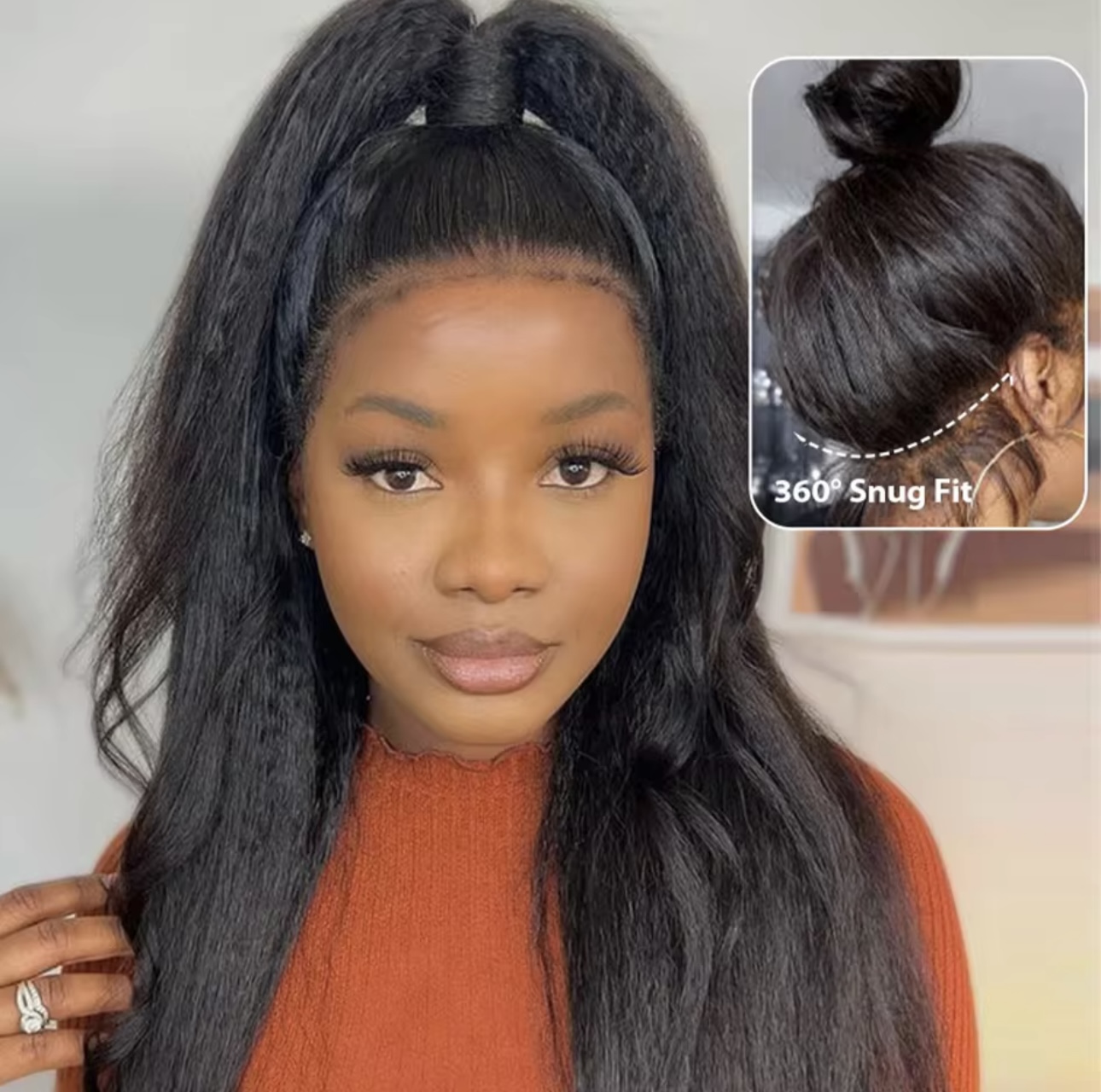Perruque Cheveux Humains Kinky Yaki Full 360 HD Lisse 30 Pouces