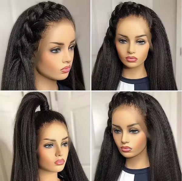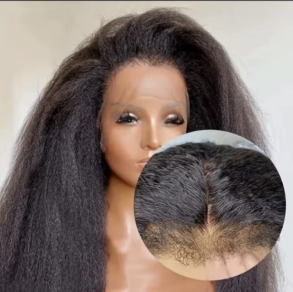 – Cheveux humains kinky yaki, offrant un aspect naturel et volumineux.